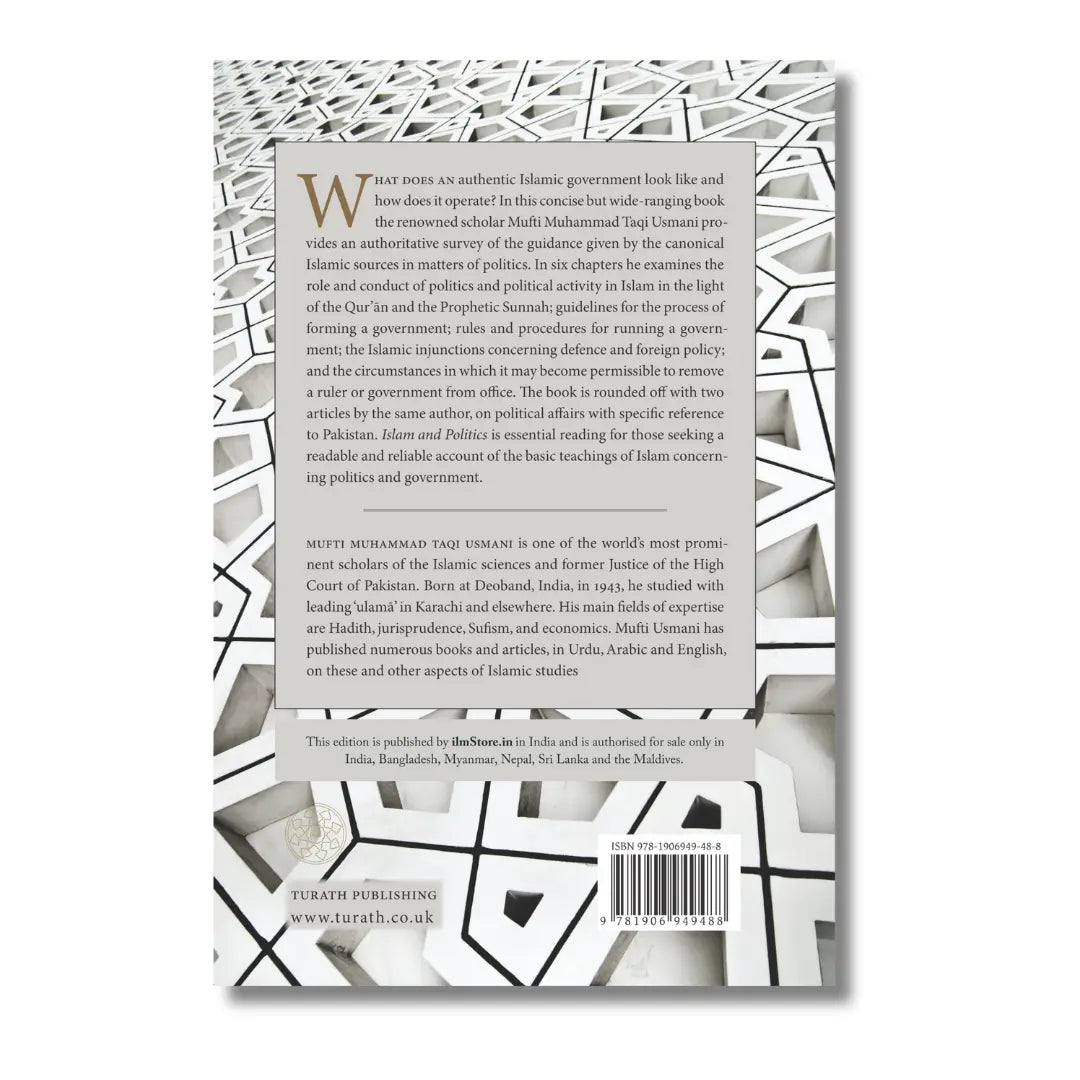 What does an authentic Islamic government look like and how does it operate? In this concise but wide-ranging book the renowned scholar Mufti Muhammad Taqi Usmani provides an authoritative survey of the guidance given by the canonical Islamic sources in matters of politics. In six chapters he examines the role and conduct of politics and political activity in Islam in the light of the Qur’ān and the Prophetic Sunnah; guidelines for the process of forming a government; rules and procedures for running a government; the Islamic injunctions concerning defence and foreign policy; and the circumstances in which it may become permissible to remove a ruler or government from office. The book is rounded off with two articles by the same author, on political affairs with specific reference to Pakistan. Islam and Politics is essential reading for those seeking a readable and reliable account of the basic teachings of Islam concerning politics and government.